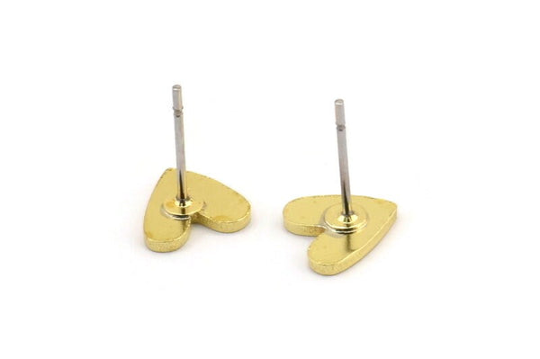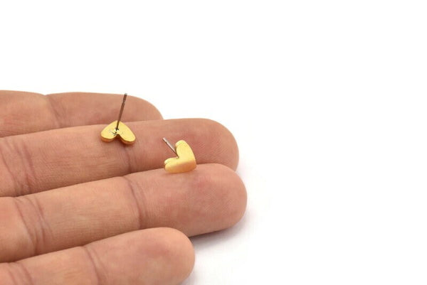 Brass Heart Earring, 10 Raw Brass Tiny Heart Shaped Stud Earrings (8x8x1mm) A3935