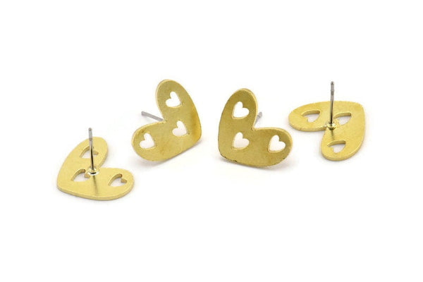 Brass Heart Earring, 6 Raw Brass Heart Shaped Stud Earrings (13x16x1mm) A3796