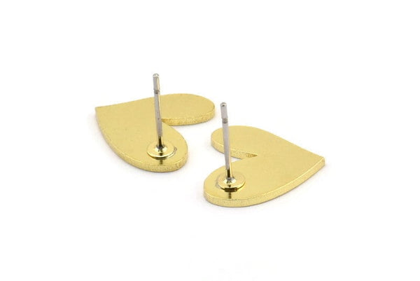 Brass Heart Earring, 8 Raw Brass Heart Shaped Stud Earrings (14x13x1mm) A3702