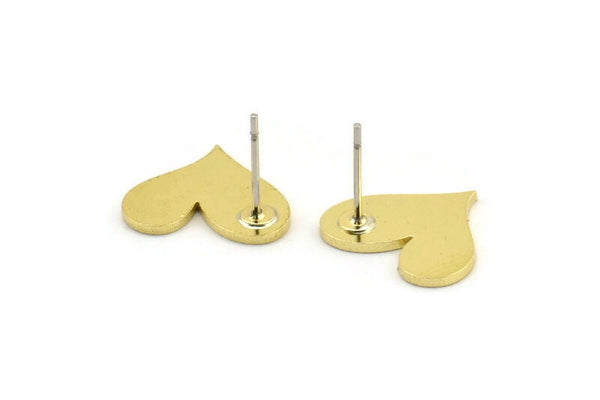Brass Heart Earring, 8 Raw Brass Heart Shaped Stud Earrings (14x13x1mm) A3736