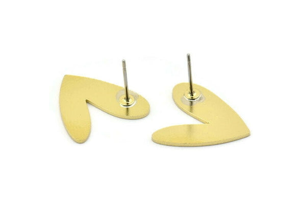 Brass Heart Earring, 8 Raw Brass Heart Shaped Stud Earrings (18x17x0.80mm) A2717