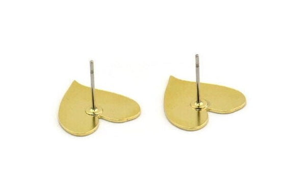 Brass Heart Earring, 8 Raw Brass Heart Stud Earrings (16x15x0.60mm) A5629 A6829