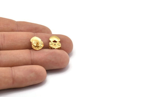 Brass Heart Stopper, 50 Raw Brass Flower Earring Back Stopper, Earring Stud Back Stoppers (14x10mm) D1056
