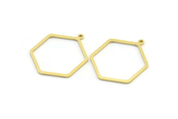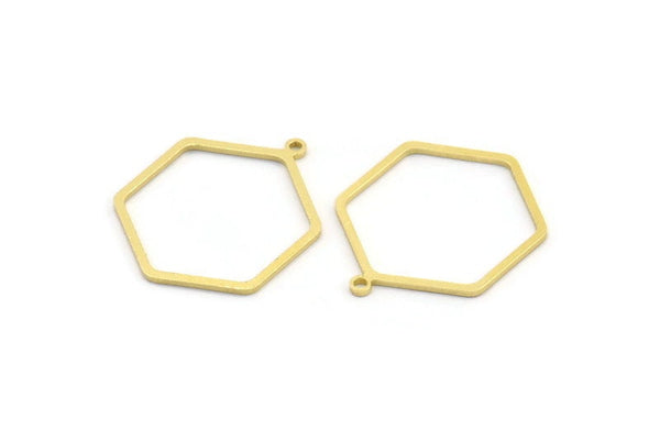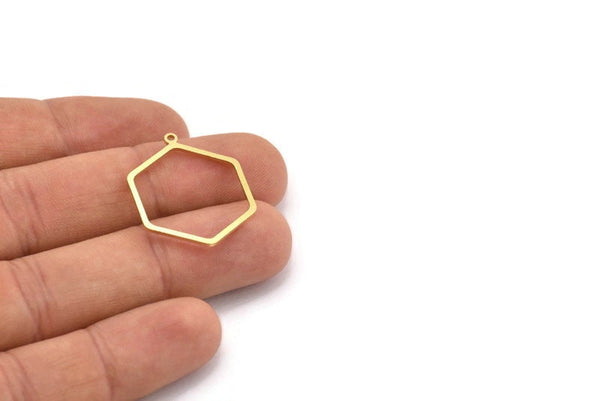 Brass Hexagon Charm, 12 Raw Brass Hexagon Shaped Charms With 1 Loop, Earring Findings, Geometric Charms (28x23x1mm) A3000