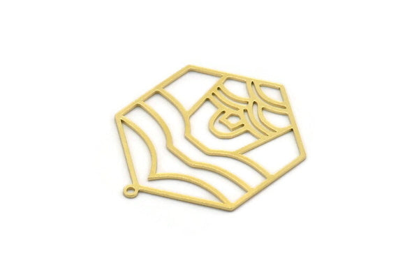 Brass Hexagon Charm, 4 Raw Brass Hexagon Shaped Charms With 1 Loop, Earring Findings, Geometric Charms (35x28.5x0.60mm) SMP0163