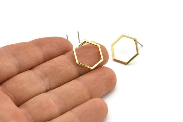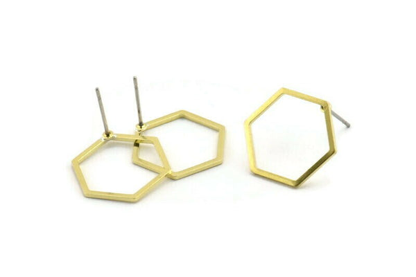 Raw Brass Hexagon Stud Earrings