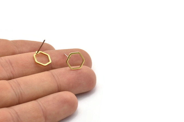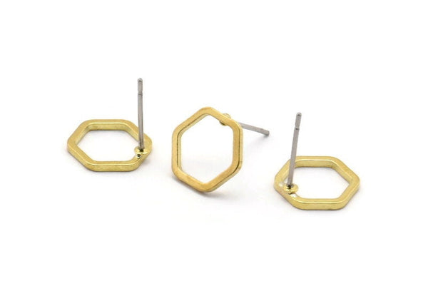 Brass Hexagon Earring, 12 Raw Brass Hexagon Stud Earrings (10mm) BS 1220 A1149