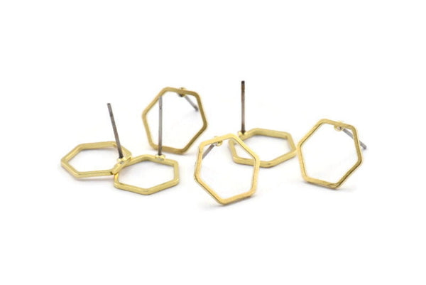 Brass Hexagon Earring, 12 Raw Brass Hexagon Stud Earrings (12x0.80mm) Bs 1171 A2055