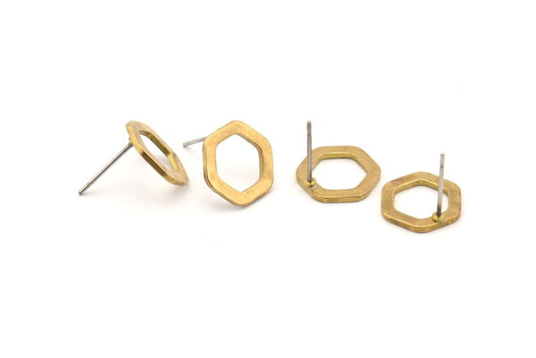 Raw Brass Hexagon Stud Earrings
