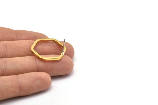 Brass Hexagon Earring, 6 Raw Brass Hexagon Stud Earrings (25x2x2mm) D0136 A1314