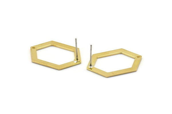 Brass Hexagon Earrings, 6 Raw Brass Hexagon Stud Earrings With 1 Hole (26.5x19x1mm) E018 A1266
