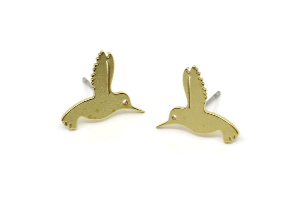 Brass Hummingbird Earring, 8 Raw Brass Tiny Hummingbird Shaped Stud Earrings, Animal Jewelry, Findings (15x13x0.80mm) SMP2545 A5912