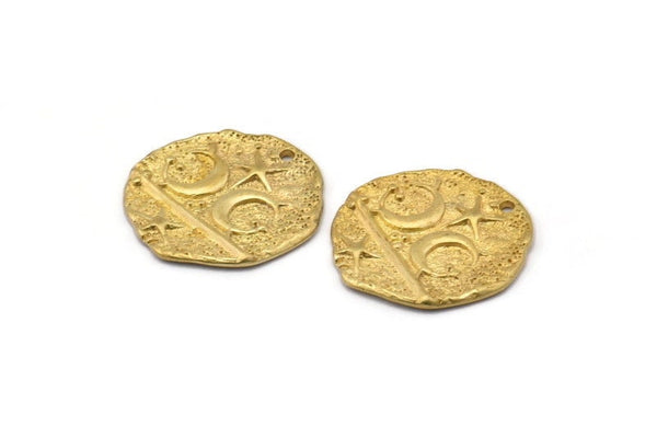 Raw Brass Crescent And Star Irregular Shaped Charms With 1 Hole