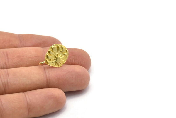 Brass Irregular Earring, 2 Raw Brass Irregular Moon Phases Shaped Stud Earrings With 1 Loop (20x14x2mm) N1905