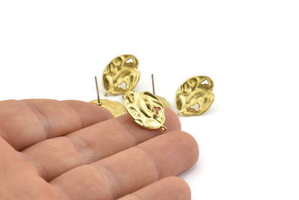 Brass Irregular Earring, 6 Raw Brass Irregular Stud Earrings With 1 Loop (20x14mm) N1226