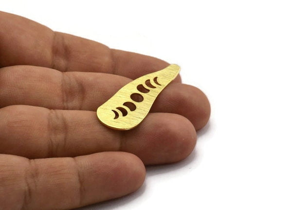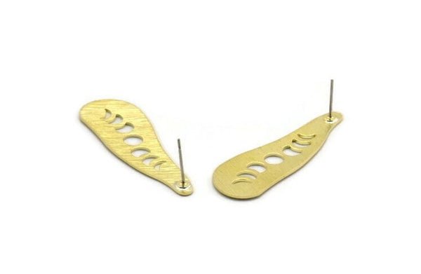 Brass Irregular Earring, 6 Textured Raw Brass Moon Phases Patterned Irregular Shaped Stud Earrings, Findings (43x14x0.80mm) M03304 A5770