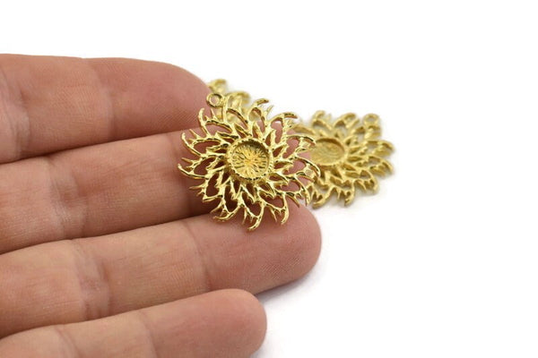 Raw Brass Rosette Charms With 1 Loop - Pad Size : 6mm