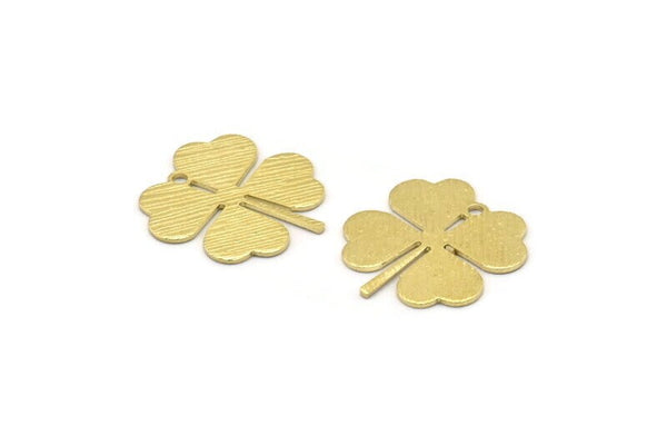 Brass Leaf Charm, 8 Textured Raw Brass Four Leaf Clover Charms With 1 Hole, Charm Earrings (22x20x0.80mm) A1662