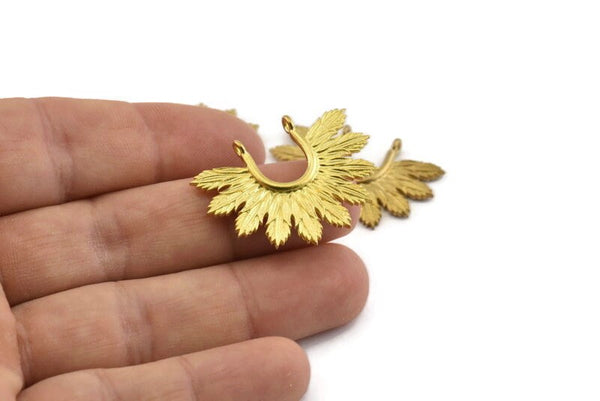 Raw Brass Leaf Charm Pendants With 2 Loops