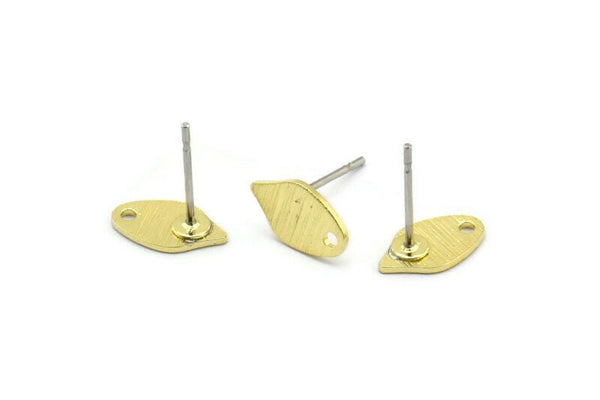Textured Raw Brass Tiny Leaf Shaped Stud Earrings With 1 Hole