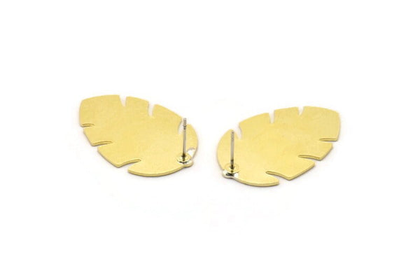 Brass Leaf Earring, 4 Raw Brass Leaf Stud Earrings (30x20x0.80mm) M01690 A2484