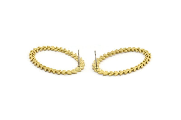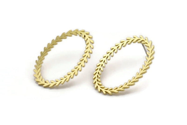 Brass Leaf Earring, 6 Raw Brass Ivy Stud Earrings, Findings (33x22x1mm) A3826