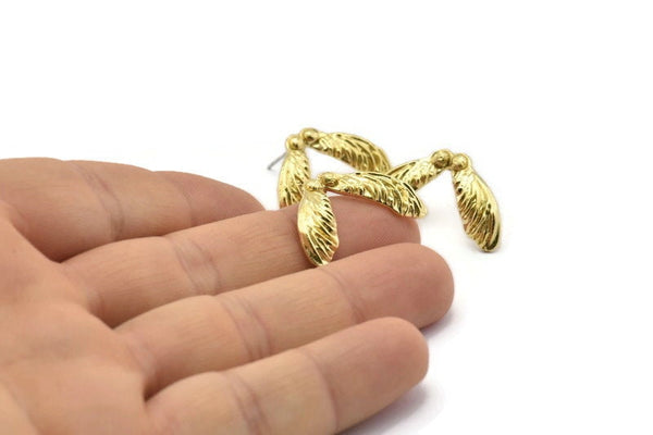 Raw Brass Maple Seed Stud Earrings