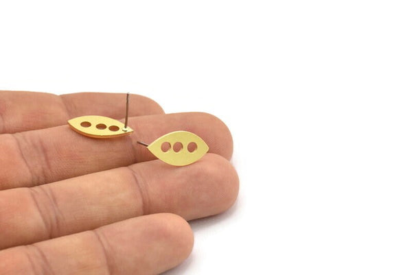 Brass Marquise Earring, 8 Raw Brass Marquise Shaped Stud Earrings (18x9x1mm) A3860