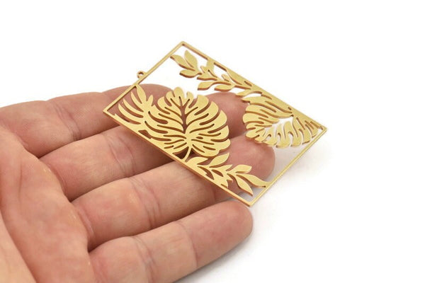 Raw Brass Monstera Leaf Shaped Charms With 1 Loop