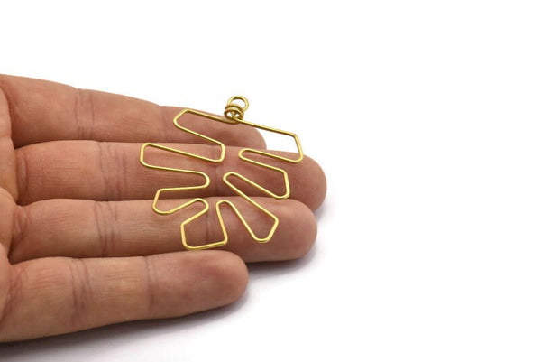 Brass Monstera Earring Findings, 2 Raw Brass Wire Monstera Earring Findings, Charms (52x40x1mm) Bs 1702