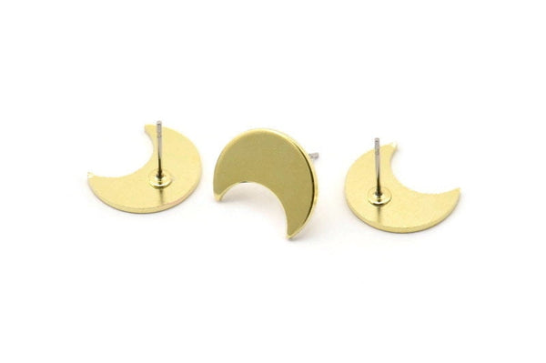 Brass Moon Earring, 10 Raw Brass Crescent Moon Shaped Stud Earrings (15x8x1mm) M01843 A2516