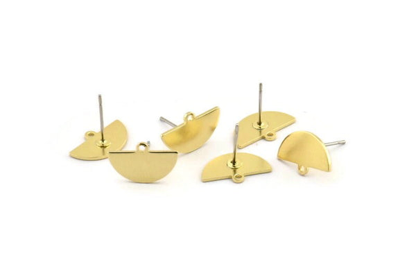 Raw Brass Semi Circle Stud Earrings With 1 Loop