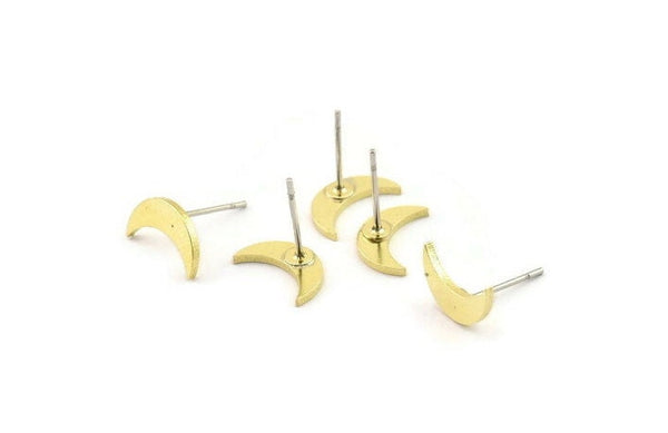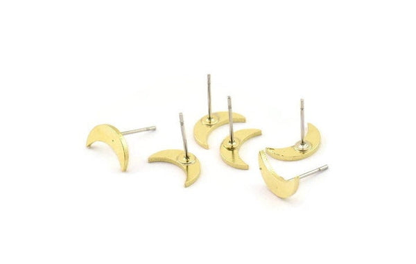 Raw Brass Crescent Moon Shaped Stud Earrings