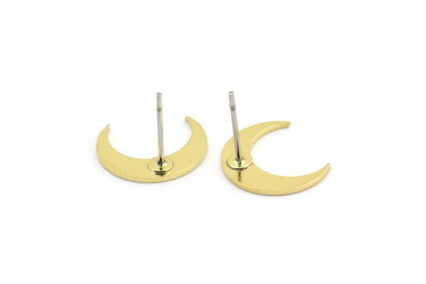 Brass Moon Earring, 12 Raw Brass Crescent Moon Shaped Stud Earrings (12x4x0.80mm) A3749