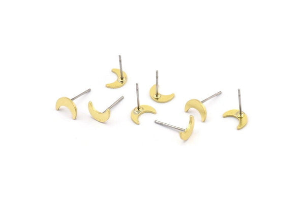 Brass Moon Earring, 12 Raw Brass Crescent Moon Shaped Stud Earrings (8x3x0.80mm) A4132 A4104