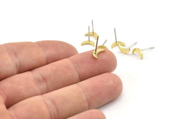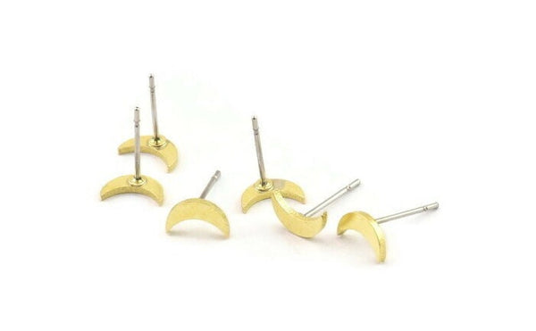 Brass Moon Earring, 12 Raw Brass Crescent Moon Shaped Stud Earrings (8x3x1mm) A4870