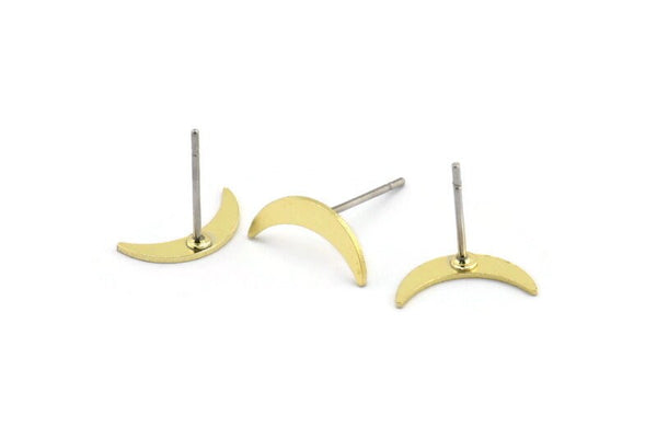 Brass Moon Earring, 12 Raw Brass Tiny Crescent Moon Shaped Stud Earrings (12x3x0.60mm) A2996