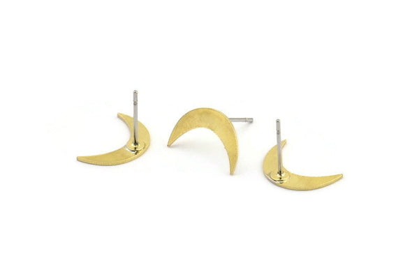 Brass Moon Earring, 12 Raw Brass Tiny Crescent Moon Shaped Stud Earrings (13x3x0.60mm) A3386