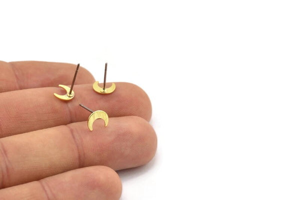 Brass Moon Earring, 12 Textured Raw Brass Tiny Crescent Moon Blanks (7x6x0.50mm) M01308 A2418