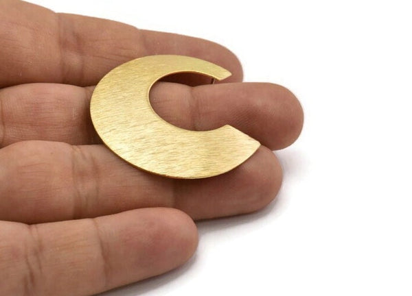 Brass Moon Earring, 4 Raw Brass Textured Crescent Stud Earrings Without Hole (40x37x0.50mm) D882 A3763