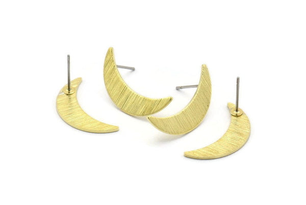 Brass Moon Earring, 4 Textured Raw Brass Moon Stud Earrings (22x6x0.80mm) M03090 A2590