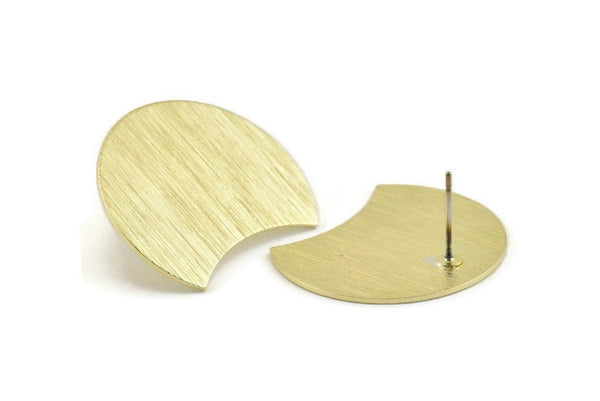 Brass Moon Earring, 4 Textured Raw Brass Moon Stud Earrings (28x21x0.80mm) M062 A1506