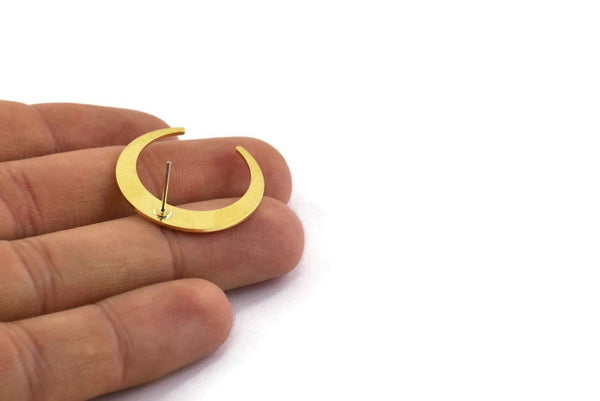 Brass Moon Earring, 6 Raw Brass Crescent Moon Stud Earrings (26x27x1mm) M02220 A2411