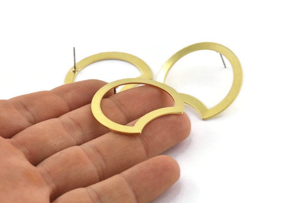 Brass Moon Earring, 6 Raw Brass Crescent Moon Stud Earrings (35x28x0.80mm) M114 A2154