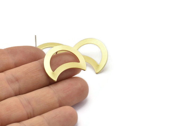 Brass Moon Earring, 6 Raw Brass Moon Stud Earrings (25x15x0.70mm) M768 A2333