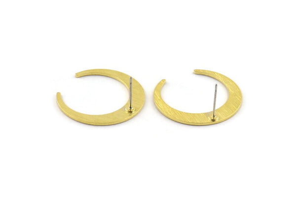 Brass Moon Earring, 6 Textured Raw Brass Crescent Moon Stud Earrings (26x27x1mm) M02223 A2412