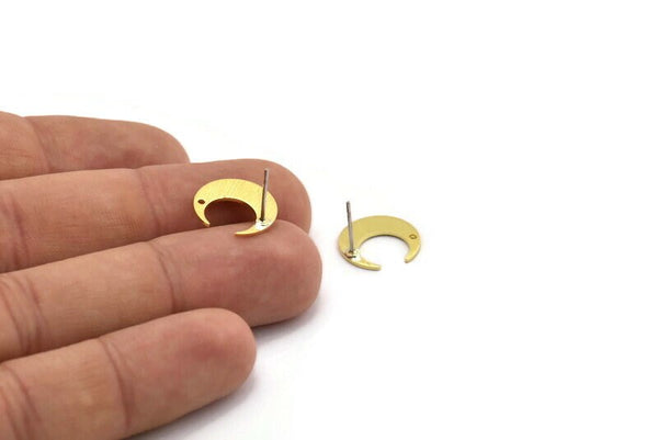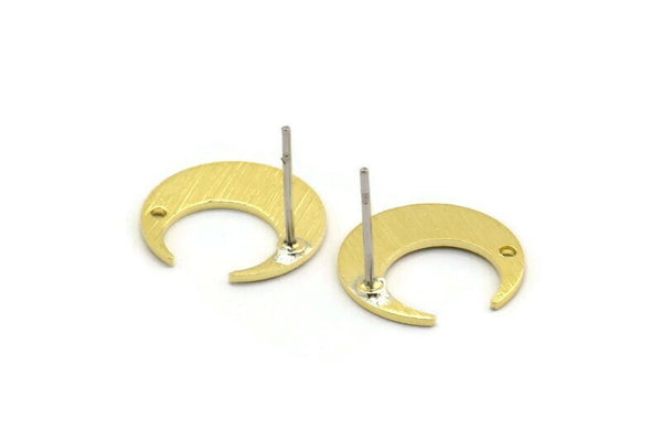 Brass Moon Earring, 6 Textured Raw Brass Crescent Moon Stud Earrings With 1 Hole (14x13.5x0.80mm) M01785 A5789