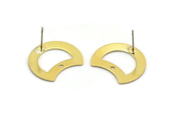 Raw Brass Crescent Moon Stud Earrings With 1 Hole