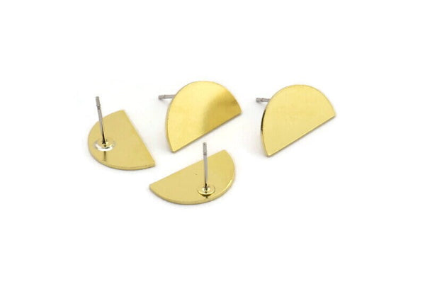 Brass Moon Earring, 8 Raw Brass Half Moon Shaped Stud Earrings, Semi Circle Earrings (10x16x0.80mm) A3731