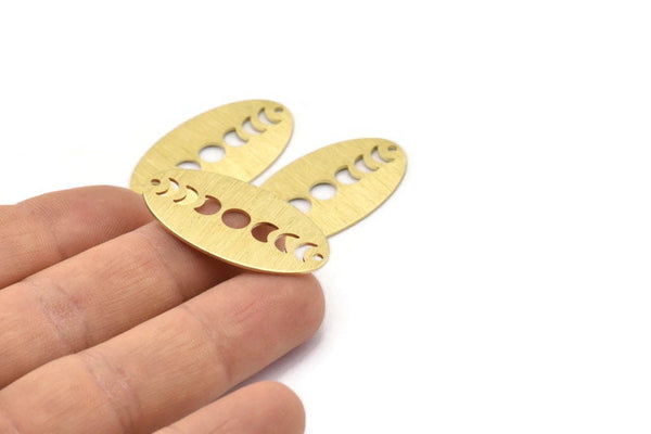 Textured Raw Brass Oval Moon Phases Charms With 2 Holes